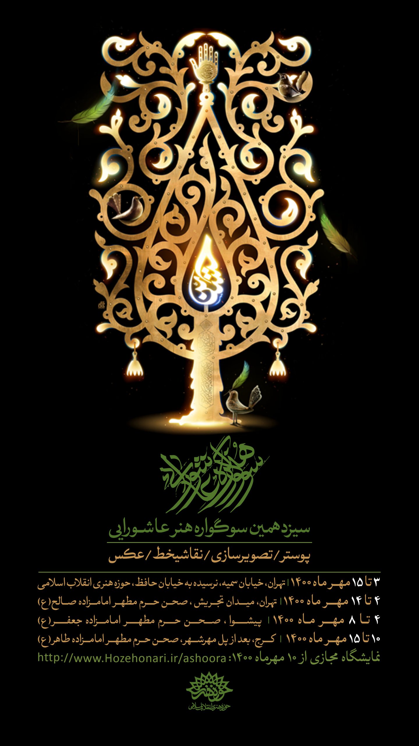 همزمان با برگزاری نمایشگاه آثار برگزیده سیزدهمین سوگواره هنرعاشورایی در« نگارخانهی ابوالفضل عالی» و گالری های شماره یک و دو «خانه عکاسان» ، تعدادی از این آثار فاخر در صحن متبرک سه امامزاده در استان تهران و البرز به نمایش عمومی گذاشته می شوند.